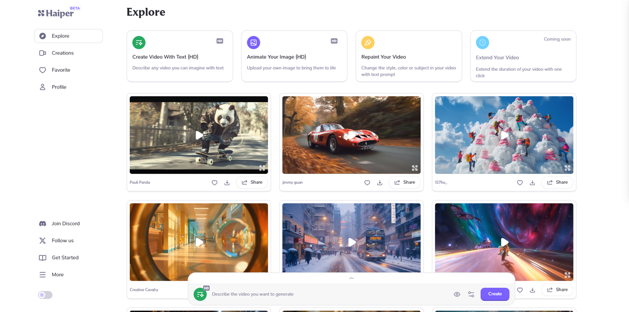 AI視頻工具推薦-Haiper(有免費(fèi)額度)?生成式: