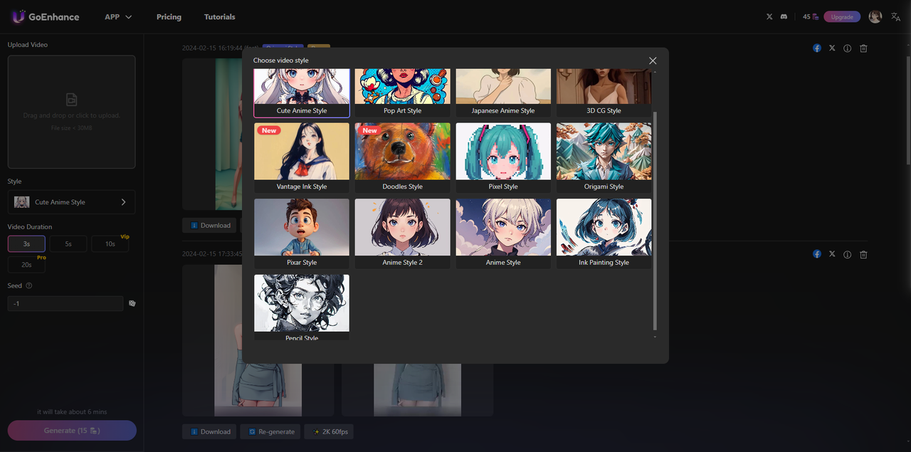 AI視頻工具推薦-goenhance(有免費(fèi)額度)?視頻轉(zhuǎn)繪: goenhance(有免費(fèi)額度)? https://app.goenhance.ai/vid2vid? 有多種風(fēng)格可供選擇 ……