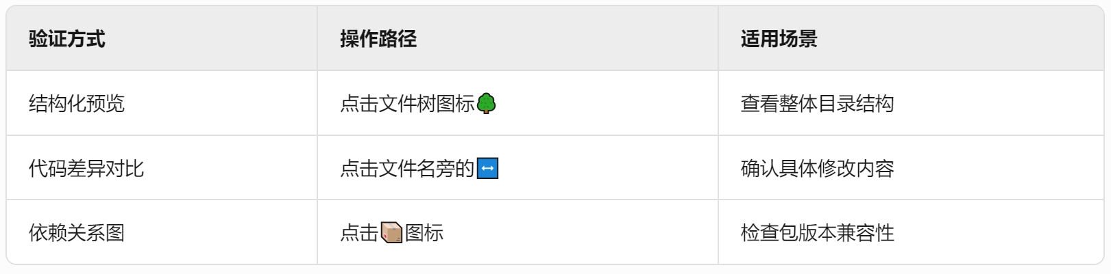 典型場(chǎng)景:某次AI生成的數(shù)據(jù)庫(kù)配置導(dǎo)致項(xiàng)目啟動(dòng)失敗 → 回退到前一個(gè)正常運(yùn)行的檢查點(diǎn)
