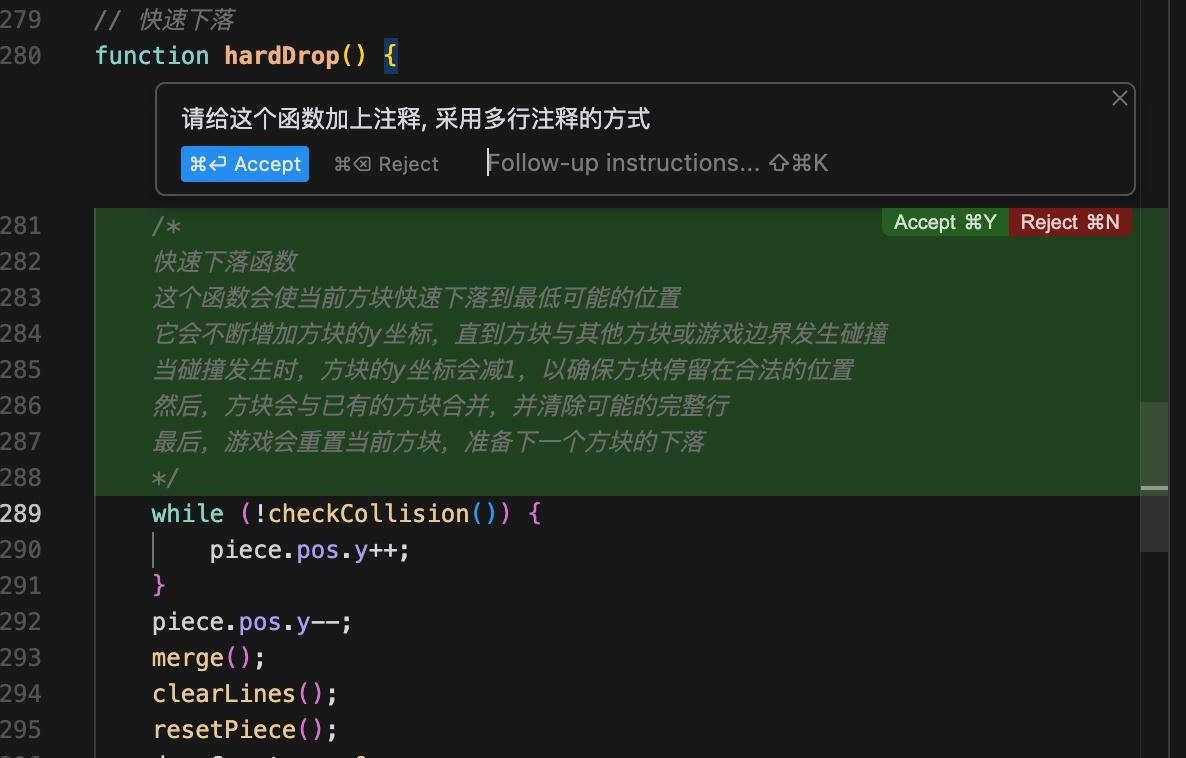 二、Command+K:代碼區(qū)的智能便簽