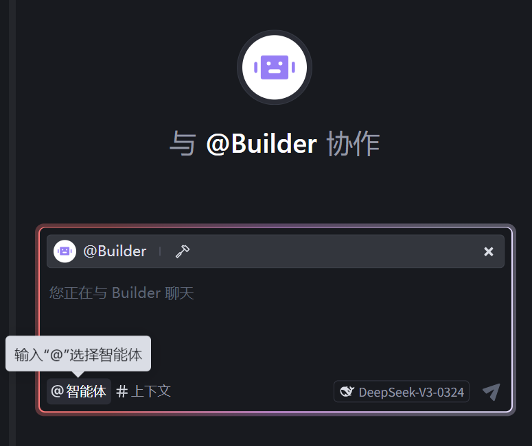 當(dāng)我們需要建立項(xiàng)目,讓 AI 對(duì)項(xiàng)目、代碼直接進(jìn)行編輯、修改、建立,我們 @Builder 調(diào)用智能體,然后再進(jìn)行給出需求(相當(dāng)于原 Builder 模式):?