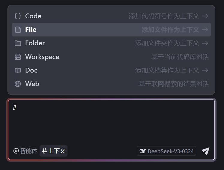 還有“引用”(#)功能太方便啦,可以隨時(shí)引用文件夾下的文件、代碼、文檔、網(wǎng)頁(yè),讓AI自動(dòng)幫我們查看、解讀!