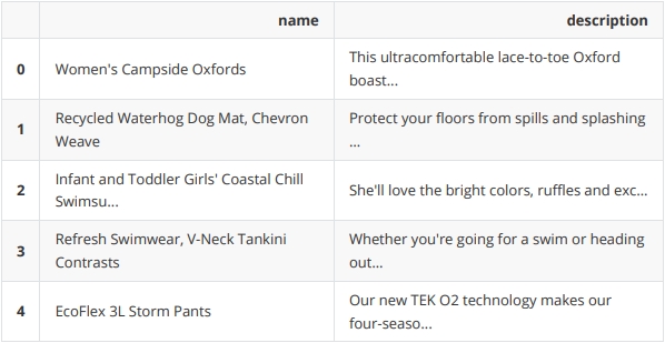 ‘../data/OutdoorClothingCatalog_1000.csv’, ‘row’: 10}