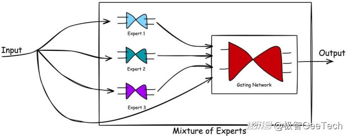 MoE架構(gòu)將復(fù)雜問(wèn)題分解為多個(gè)子任務(wù),由不同的“專(zhuān)家”網(wǎng)絡(luò)處理。這些專(zhuān)家是針對(duì)特定領(lǐng)域或任務(wù)訓(xùn)練的小型神經(jīng)網(wǎng)絡(luò),例如語(yǔ)法、事實(shí)知識(shí)或創(chuàng)造性文本生成。
