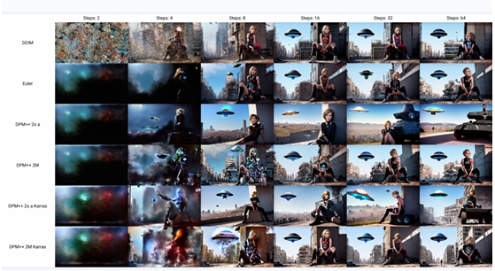 下面我們通過一些實際的對比圖,來看看不同采樣方法在不同步數(shù)下的表現(xiàn)。