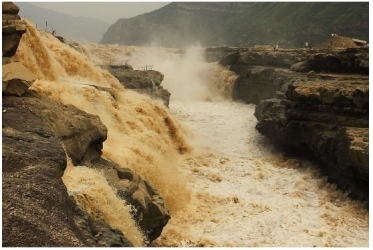“黃河之水天上來,奔流到海不復(fù)回?!?李白的這句詩可以用來形容這幅圖片中洶涌澎湃、波濤洶涌的景象:一條湍急的河流從山上奔騰而下,形成了一幅令人嘆為觀止的畫面,展示出大自然的力量和雄偉壯麗。