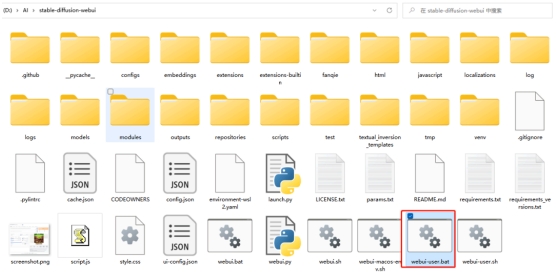 1、到stable-diffusion目錄下找到webui-user.bat這個文件,雙擊打開它,有的安裝包里管它叫“啟動器”,總之,打開就行。