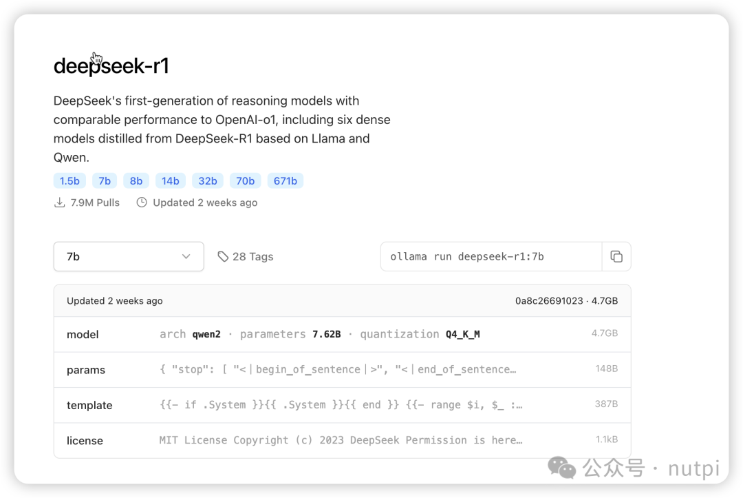 打開Ollam[4]a 模型庫[5] ,你會看到豐富多樣的 DeepSeek-R1 模型版本,如 1.5B、7B、32B 等。根據(jù)自身電腦硬件配置來選擇合適的模型版本至關重要。