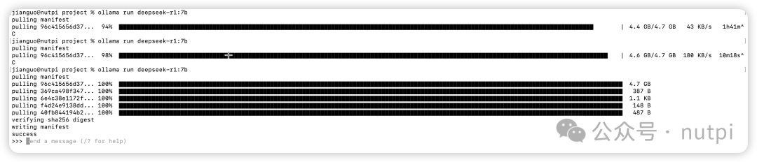 ? 若選擇 7B 版本,輸入 ollama run deepseek-r1:7b 。我 Mac 選擇的是這個。