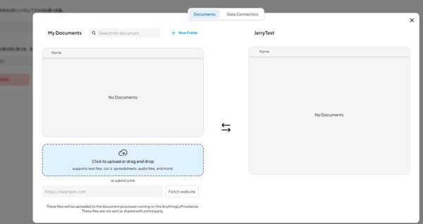 接下來通過向量數(shù)據(jù)庫來上傳并存儲用戶提供的文檔。點擊上傳圖標,打開上傳對話框: