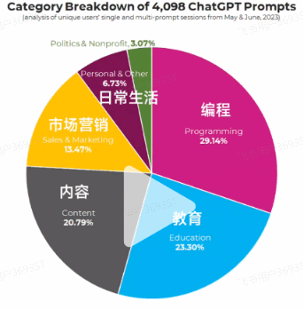 國外有公司對C端用戶使用的提示詞進行了分析,統(tǒng)計出了5到6月用戶使用chatgpt的場景。