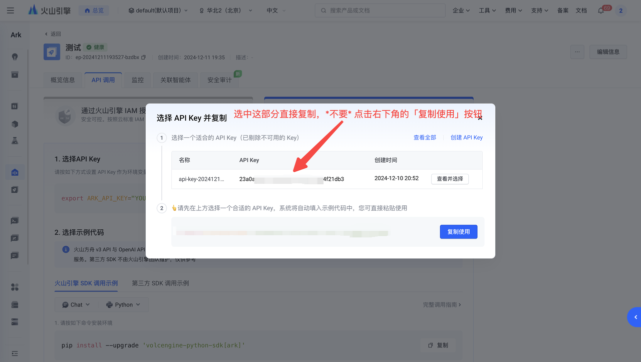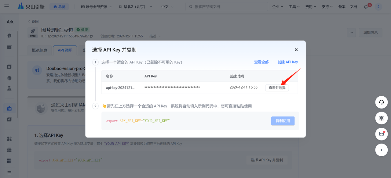– 將獲取到的 API_KEY 和 ENDPOINT_ID 填入至關(guān)聯(lián)賬號(hào)處