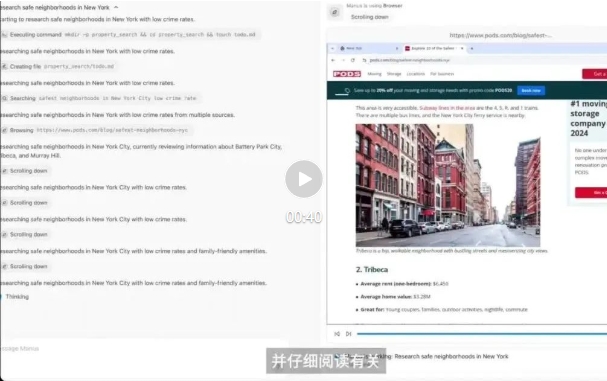 在第二個演示視頻中,官方讓 Manus 選取一些適宜居住的社區(qū),要充分結(jié)合家庭收入情況和家里孩子上學(xué)需求,地點(diǎn)要選在紐約,條件要安全、犯罪率低。