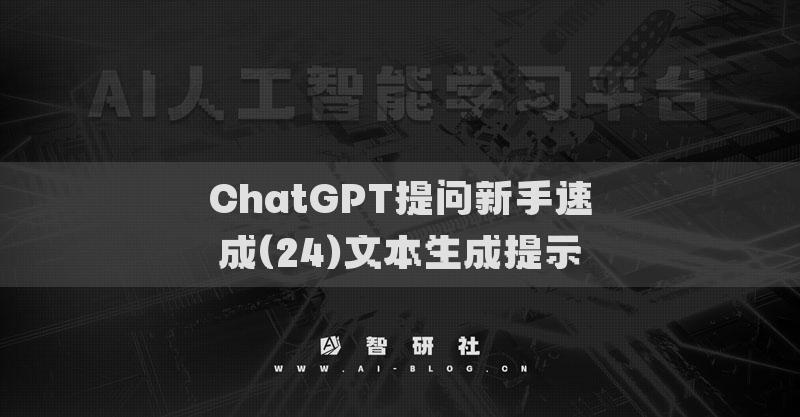ChatGPT提問新手速成(24)文本生成提示: 什么是文本生成提示? 引導(dǎo)AI創(chuàng)作的指令 “文本生成提示”是指通過向大型語言模型(LLM)提供特定的指令或上下文,引導(dǎo)其生成符合……