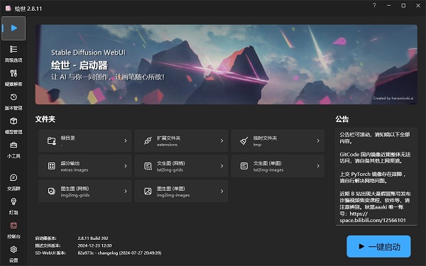 注意:下方為繪世啟動器下載地址,下載了整合包可不用單獨下載啟動器,整合包中已含啟動器。